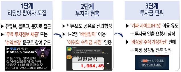 불법 투자리딩방은 원금보장·고수익 창출이 가능하다고 피해자들을 속여 투자를 유도하는 것이 특징이다.