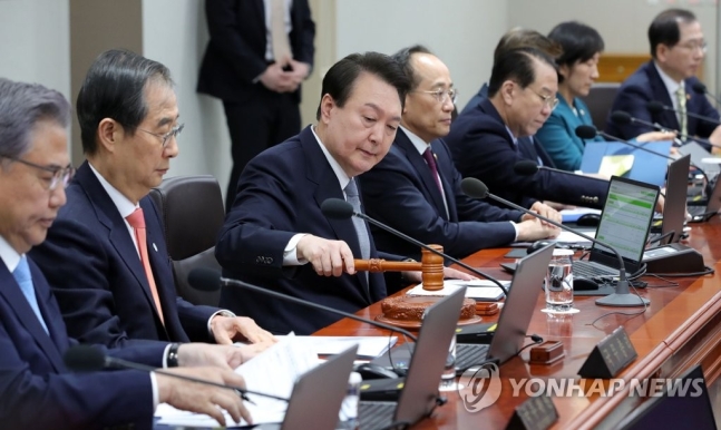 윤석열 대통령이 28일 서울 용산 대통령실 청사에서 열린 국무회의에서 개회를 선언하고 있다. [사진출처=연합뉴스]