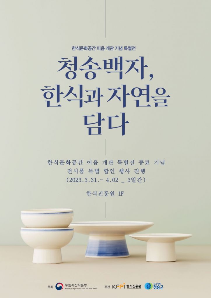 청송문화관광재단(이사장 윤경희)은 서울 종로구에 위치한 한식문화관 이음 갤러리에서 청송백자 특별전시 종료 기념 “전시품 특별할인 행사를 오늘 3월 31일부터 4월 2일까지 3일간 개최한다.