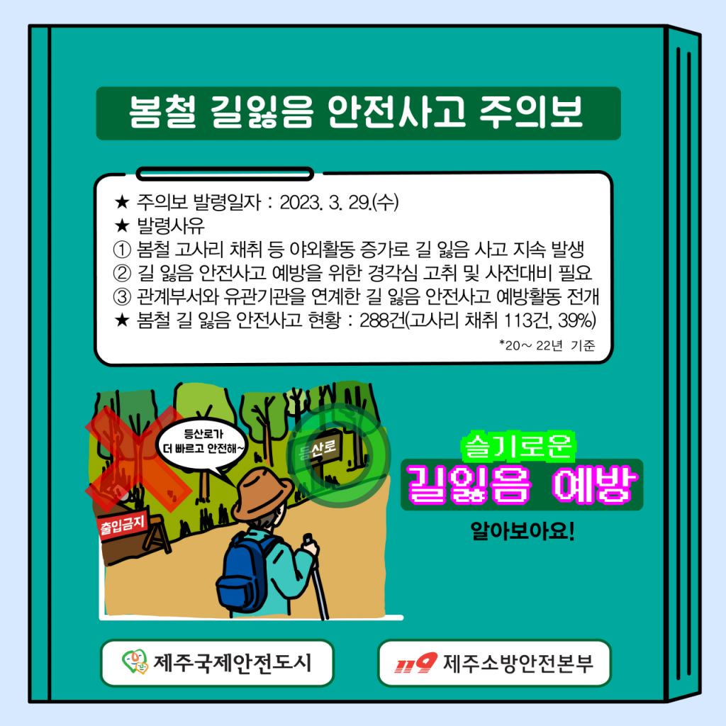 봄철 길 잃음 안전사고 주의보 포스터[사진제공=제주소방본부]