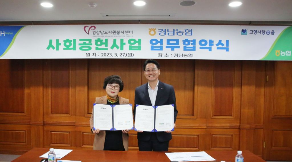 경남농협과 경상남도자원봉사센터는 사회공헌 실천 공동노력을 위한 업무협약을 체결했다. [이미지제공=경남농협]