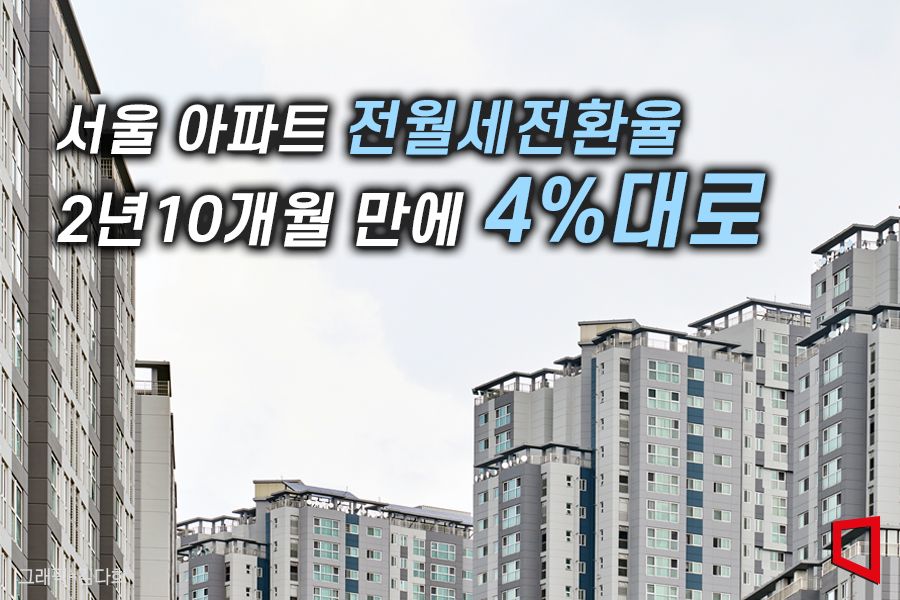 29일 KB부동산에 따르면 3월 서울 아파트 전월세전환율은 4.08%로 나타났다. 한 달 전 3.98% 대비 0.1%포인트(p) 올랐다. 전월세전환율이 4%대를 기록한 것은 2020년 5월 이후 2년10개월 만이다.