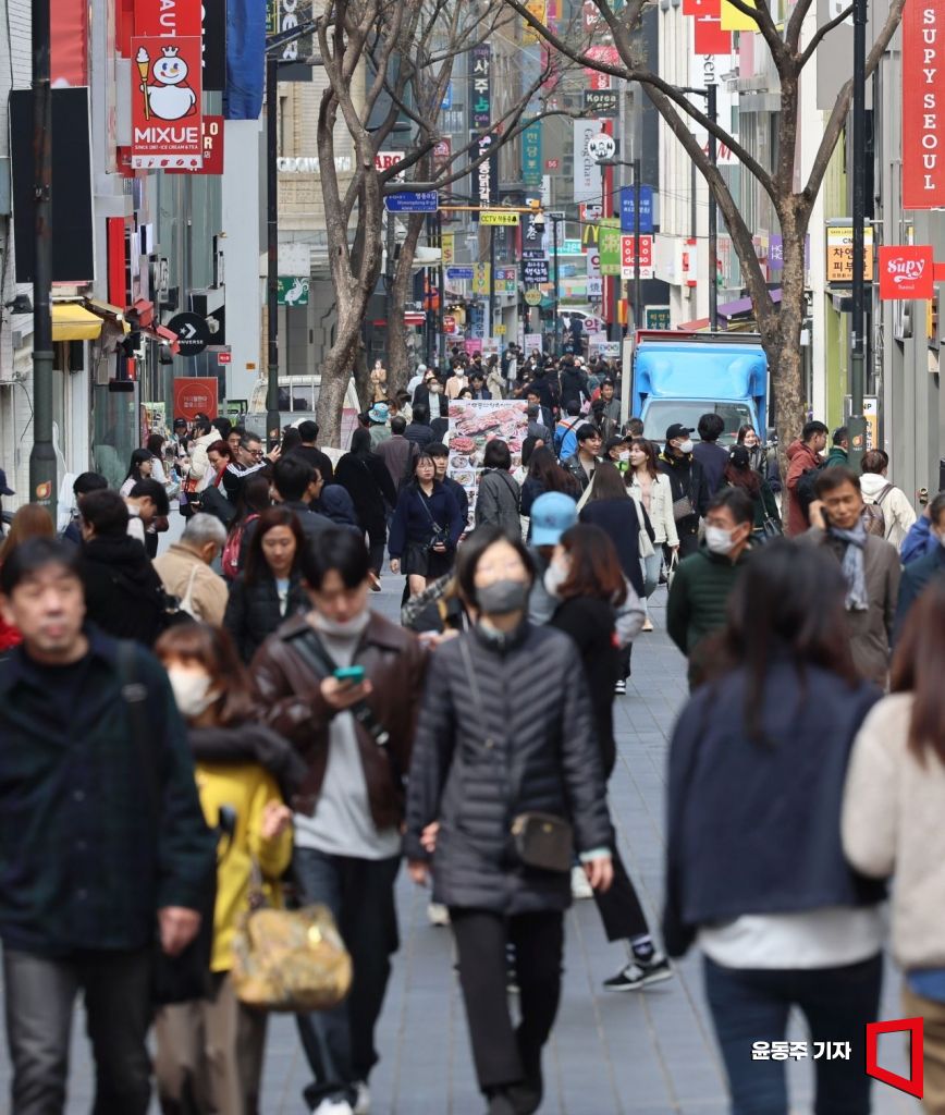 28일 서울 중구 명동쇼핑거리가 외국인 관광객들과 시민들로 북적이고 있다. 사진=윤동주 기자 doso7@