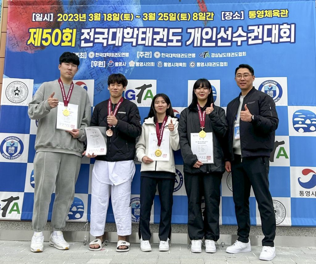 경남대학교는 지난 18일부터 25일까지 경남 통영체육관에서 열린 제50회 전국대학 태권도 개인선수권대회에서 금메달 3개, 동메달 1개를 획득한 사실이 뒤늦게 알려졌다.