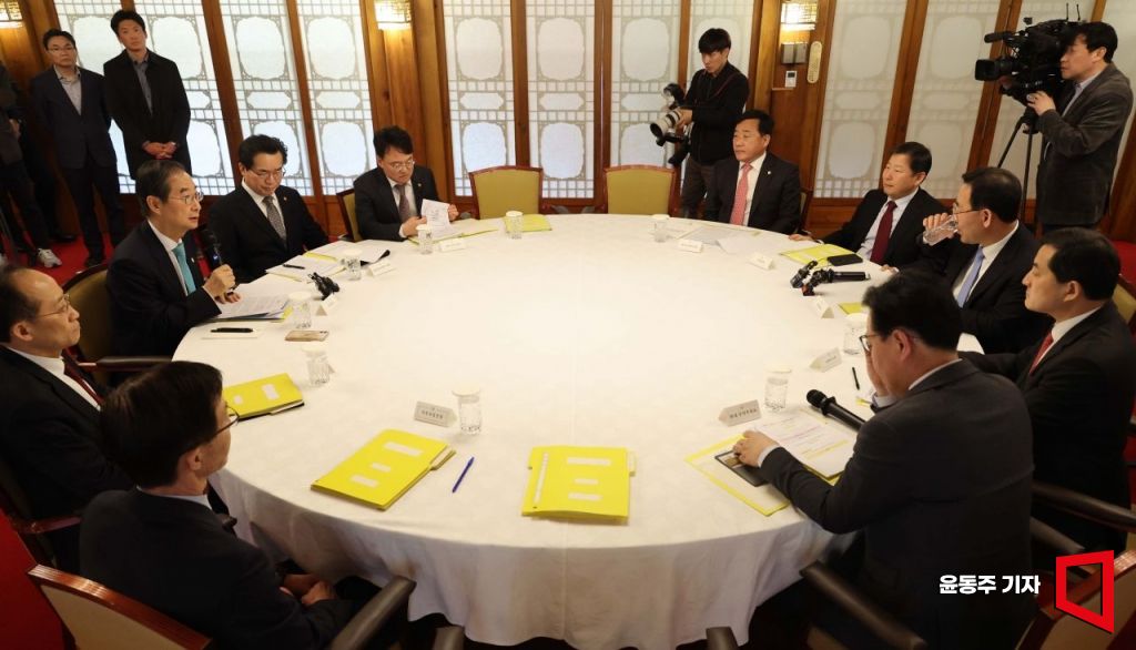 한덕수 국무총리가 29일 서울 종로구 총리공관에서 열린 양곡관리법 관련 당정협의회에 참석, 발언을 하고 있다. 사진=윤동주 기자 doso7@