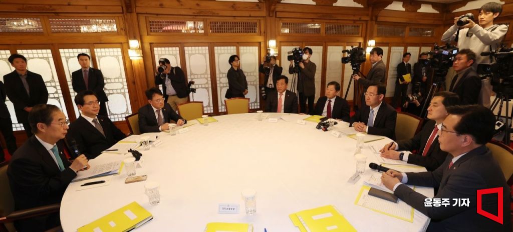 한덕수 국무총리가 29일 서울 종로구 총리공관에서 열린 양곡관리법 관련 당정협의회에 참석, 발언을 하고 있다. 사진=윤동주 기자 doso7@