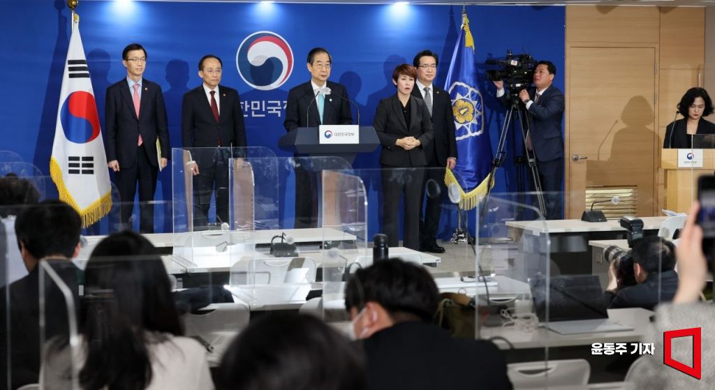 한덕수 국무총리가 29일 서울 종로구 정부서울청사에서 '양곡관리법 개정안'과 관련한 대국민 담화문을 발표하고 있다. 사진=윤동주 기자 doso7@