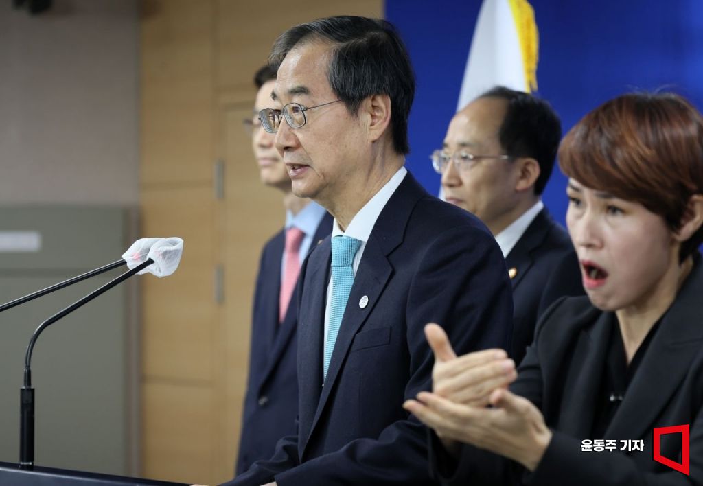 한덕수 국무총리가 29일 서울 종로구 정부서울청사에서 '양곡관리법 개정안'과 관련한 대국민 담화문을 발표하고 있다. 사진=윤동주 기자 doso7@