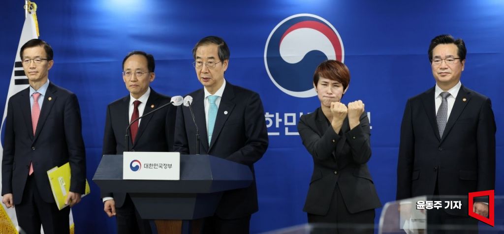 한덕수 국무총리가 29일 서울 종로구 정부서울청사에서 '양곡관리법 개정안'과 관련한 대국민 담화문을 발표하고 있다. 사진=윤동주 기자 doso7@
