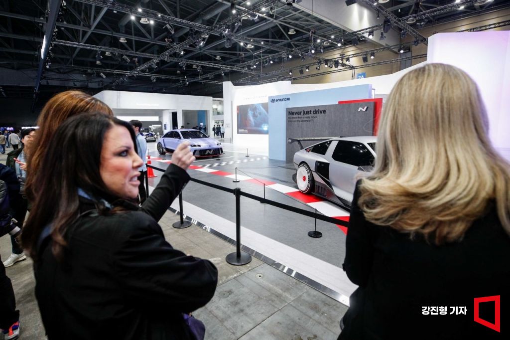 30일 경기 고양 킨텍스에서 열린 '2023서울모빌리티쇼 프레스브리핑'을 찾은 취재진들로 붐비고 있다.