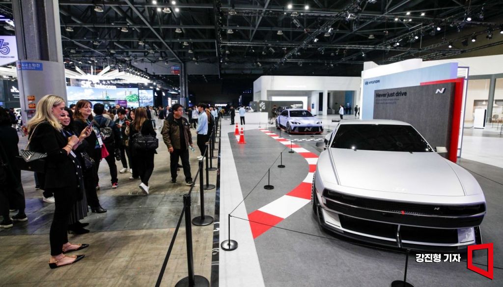 30일 경기 고양 킨텍스에서 열린 '2023서울모빌리티쇼 프레스브리핑'을 찾은 취재진들로 붐비고 있다.