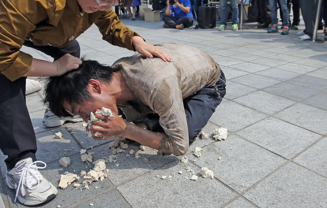 탈북 청소년들이 꽃제비 시절 경험담을 선보인 연극의 한 장면