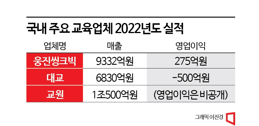 웅진씽크빅은 국내 대형 교육업체 중 디지털 변화에 가장 기민한 편이다. 코로나19로 에듀테크가 크게 주목받기 전인 2014년부터 디지털 전환을 선언하고 2016년 IT개발실을 신설하는 등 기존 사업을 빠르게 재편했다. 에듀테크 역량이 뒷받침되자 2020년엔 매출에서 대교를 3위로 밀어내고 업계 선두 교원을 바짝 뒤쫓고 있다. 지난해엔 매출 9332억원, 영업이익 275억원을 기록하며 1조클럽 입성을 눈앞에 두고있다.