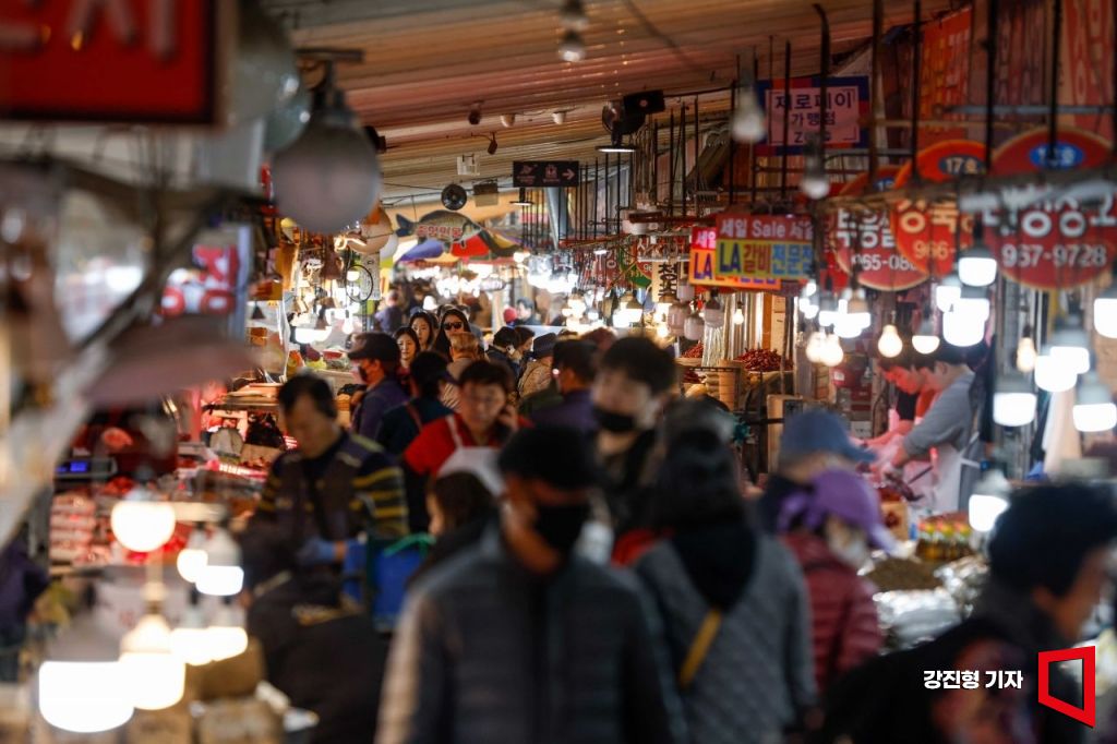 정부가 온누리상품권 개인 구매 한도를 월 150만원으로 상향 조정한 30일 서울 동대문구 경동시장을 찾은 시민들로 붐비고 있다.