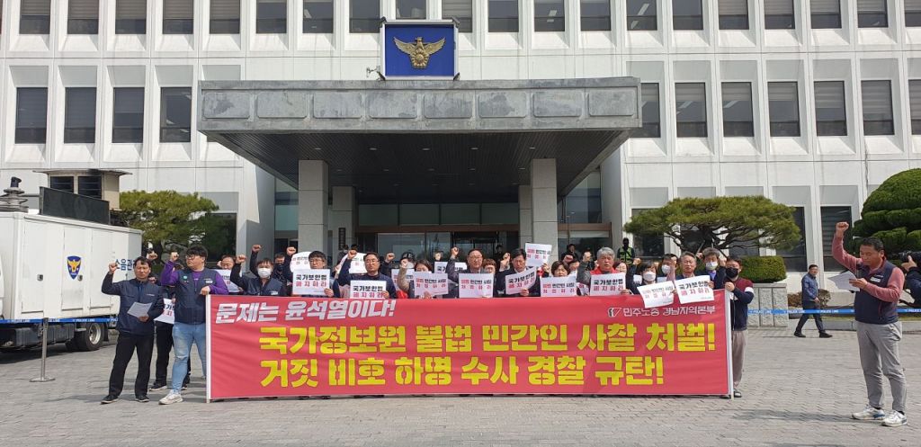 민주노총 경남본부가 경남경찰청 앞에서 기자회견을 하고 있다. [사진=이세령 기자]