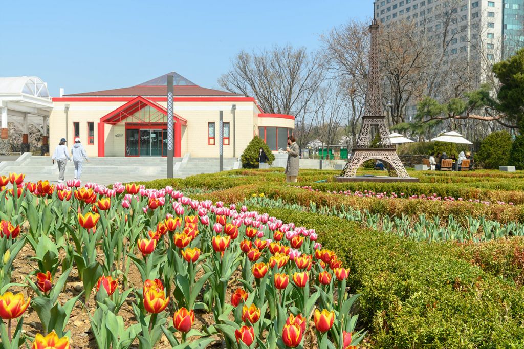 공원 내에는 에펠탑 모형이 위치한 파리광장 자수화단에 심어진 9000본의 튤립과 공원 전체적으로 심은 2만1000본의 튤립 등 총 3만송이 튤립이 심어 있다. 여기에는 흔히 볼 수 있는 빨간 튤립(아펠둔), 노란 튤립(골든 퍼레이드) 뿐만 아니라 백색 튤립(하쿤), 빨간색과 노란색이 어우러진 튤립(덴마크) 등 다양한 색상의 튤립을 조합하여 생기 있는 튤립정원을 조성했다.