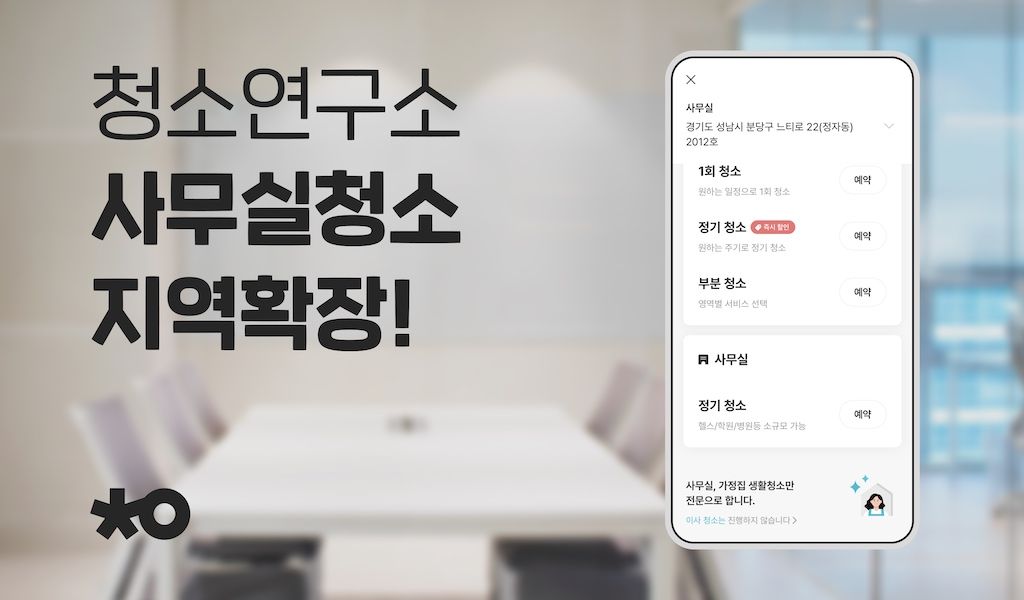 중소기업과 학원, 병원 등이 주 고객인 사무실 청소 서비스는 현재 500여개 고객사가 정기 서비스로 이용 중이다. 고객사의 총 직원 수만 약 6만명에 이른다. 최소 2시간부터 이용할 수 있는 사무실 청소 서비스는 청소연구소 앱에서 고객들이 원하는 일정에 맞춰 신청하면 된다.