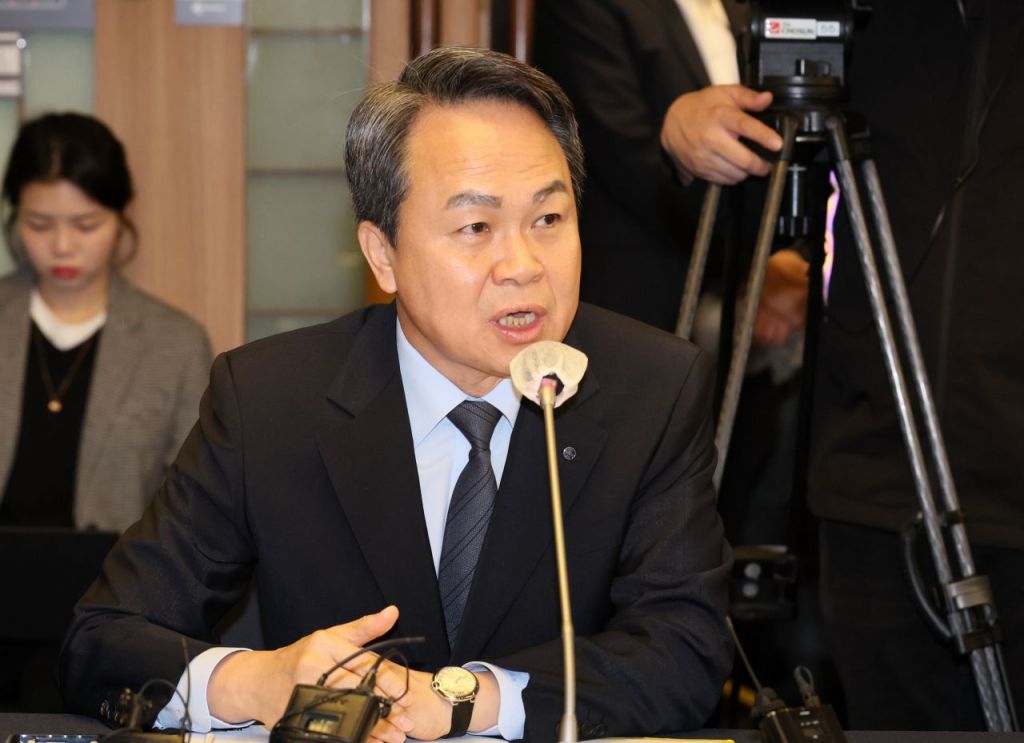 진옥동 신한금융지주 회장이 31일 서울 중구 프레스센터에서 열린 금융지주회장 간담회에 참석, 발언을 하고 있다. 이번 간담회는 김주현 금융위원장과 이복현 금융감독원장, 진옥동 신한금융지주 회장, 임종룡 우리금융지주 회장, 함영주 하나금융지주 회장, 이석준 NH농협금융지주 회장, 양종희 KB금융지주 부회장, 김광수 은행연합회장이 참석했다. 사진=윤동주 기자 doso7@