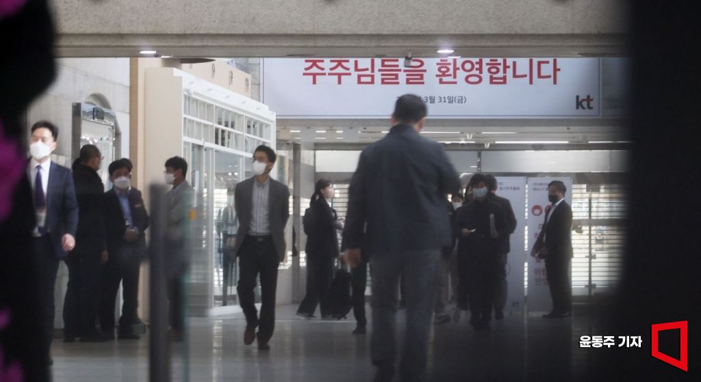 31일 서울 서초구 KT연구개발센터에서 열린 KT 주주총회에 주주들이 총회장으로 입장하고 있다. 사진=윤동주 기자 doso7@