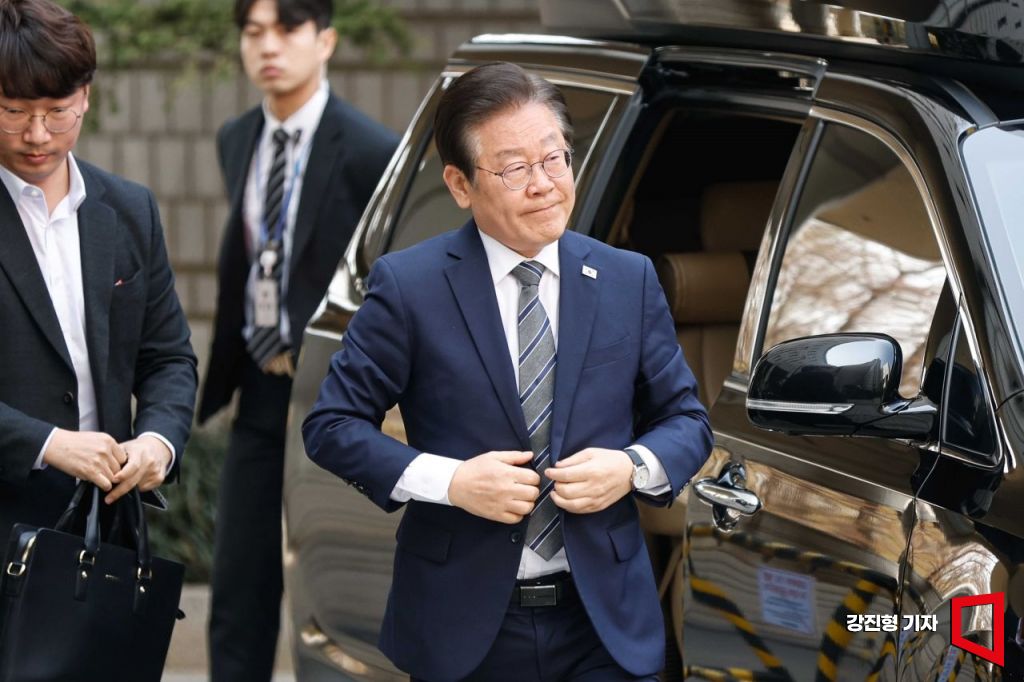 공직선거법상 허위사실 공표 혐의를 받고 있는 이재명 더불어민주당 대표가 31일 서울 서초구 서울중앙지방법원에서 열린 공판에 출석하고 있다. 사진=강진형 기자aymsdream@