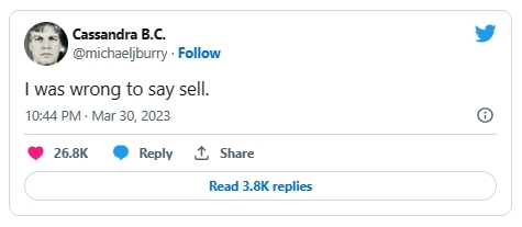 결국 버리 CEO는 수익을 내기에 최적의 시점에 매도 의견을 내버린 셈이다. 그는 2월 FOMC 이후 돌연 트위터 계정을 삭제했다가 이후 복구했고, 3월 말에는 자신이 실수했다고 고백하기에 이르렀다.