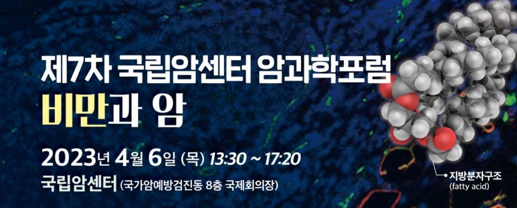 암과학포럼 의장을 맡고 있는 김영우 국립암센터 연구소장은 “현대인에게 꾸준히 증가하고 있는 비만은 여러 면에서 건강에 위험요인으로 작용하기 때문에 이번 포럼으로 비만이 암의 발생·진행에 영향을 미치는 과정을 전문가들과 의료인, 일반 국민들과 공유하고자 한다”며 “이번 포럼을 계기로 국립암센터는 비만과 관련된 암 연구를 활성화하고 관련 치료제 개발 및 암 정보 제공에 더욱 힘쓰겠다”고 말했다.