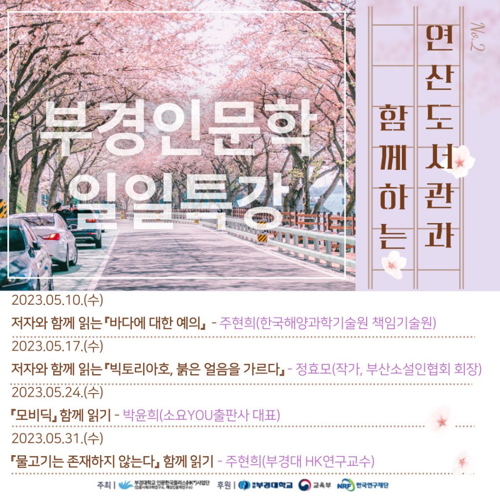 올해는 오는 5월 독서문화의 달을 맞아 바다와 관련된 책을 쓴 저자를 초청해 책에 관한 이야기를 나누는 강연을 마련했다. 부경 인문학 일일 특강은 오는 5월과 9월 각각 4회씩 운영 예정이다.