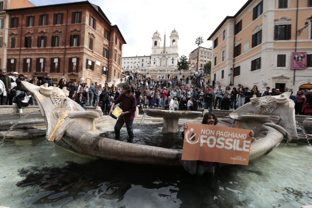 1일(현지시간) 미국 CNN 방송 등 주요 외신에 따르면 이날 이 단체는 스페인광장의 스페인계단 아래 있는 배 모양 분수인 '바르카치아 분수대'(이탈리아어로 '낡은 배'라는 뜻)에 검은색 액체를 쏟아 부었다. 이 단체가 트위터에 올린 영상을 보면 당시 단체 소속 남성 3명과 여성 1명이 분수대 안에 들어가 주머니에 든 검은 액체를 물에 풀자 이내 분수대 물은 검은색으로 변했다. 이 단체는 이 액체가 숯으로 만든 식물성 먹물이라고 밝혔다. 이들은 검게 물든 분수대 위에서 "화석연료를 사용하지 말자"라고 적힌 현수막을 펼쳐 보였다.