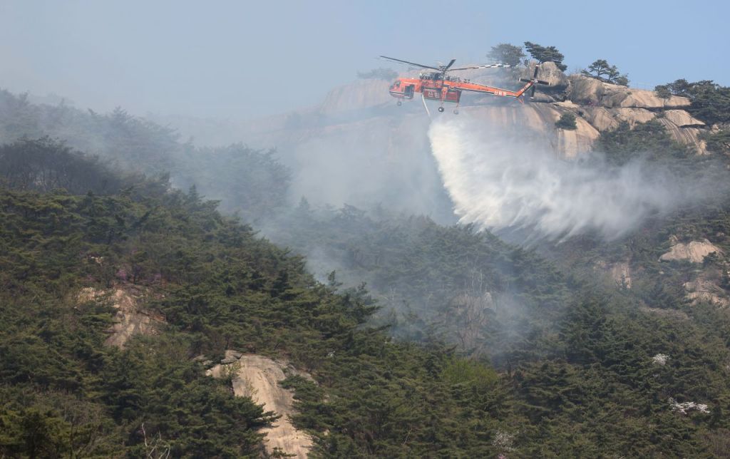 2일 오후 산불이 발생한 서울 종로구 인왕산에서 소방헬기가 진화 작업을 하고 있다.<사진출처:연합뉴스>