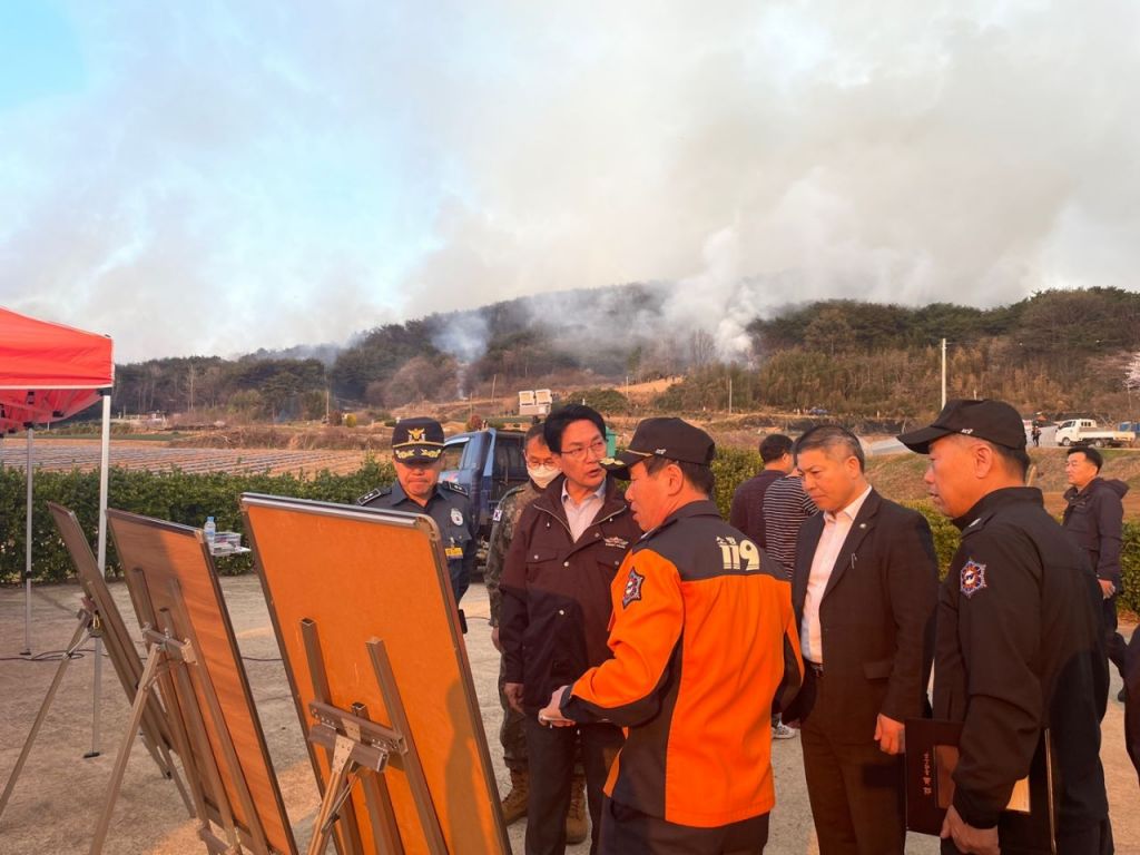 산불 신고 즉시 현장을 찾은 심덕섭 고창군수는 “민가 피해가 발생하지 않도록 방어선 구축에 만전을 기하고, 인명 피해가 없도록 위험지역 주민 대피에 최선을 다하라”며 “진화 작업에 직원들과 장비를 총동원하라”고 명령했다.