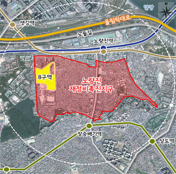 서울 동작구 대방동 노량진8구역이 재개발을 통해 987가구 공동주택으로 탈바꿈한다.