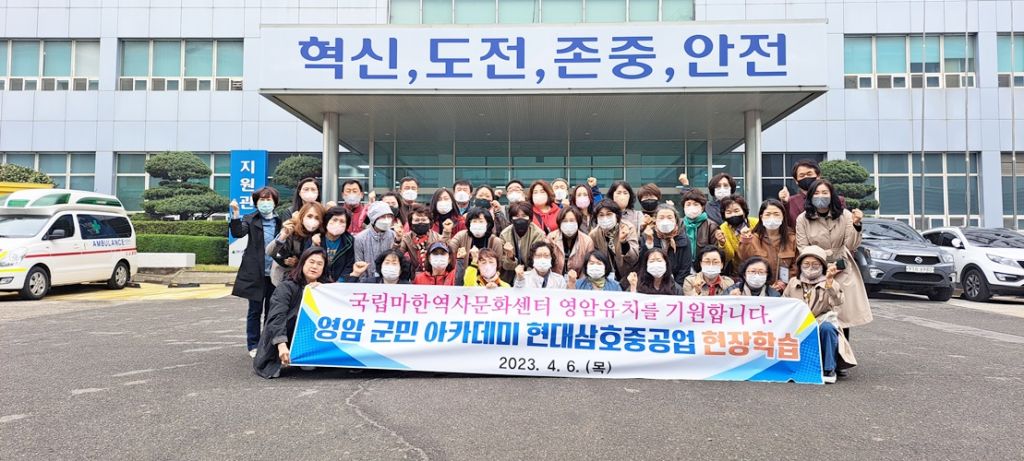 이번 견학은 군민아카데미 교육 과정 중 하나인 ‘우리 지역 알기’ 프로그램으로의 일환으로 추진됐으며, 이동시간을 이용해 펼쳐진 문화관광해설사로부터 영암역사를 풀어 듣는 ‘역사 투어’에 이어 현대삼호중공업에서는 홍보영상 시청과 공장 시설 견학 등이 이뤄져 지역의 역사와 현장에 대한 이해도를 높였다.