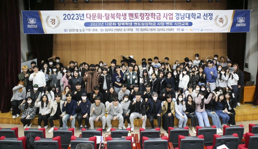 다문화·탈북학생 멘토링장학금 사업 사전교육 단체사진. [이미지제공=경남대]