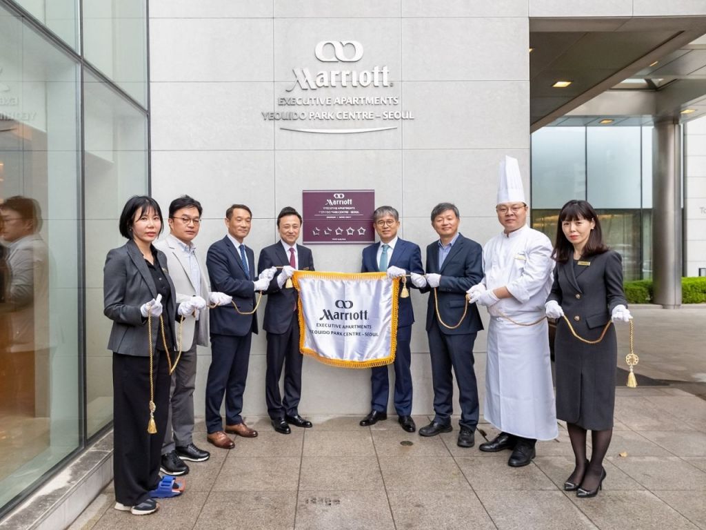 메리어트 인터내셔널의 국내 유일 럭셔리 레지던스 호텔인 메리어트 이그제큐티브 아파트먼트 서울은 11일 호텔 등급 5성 획득을 기념한 현판식을 진행했다고 밝혔다. 이 자리에는 이민영 총괄 총지배인을 비롯해 소유·운영사인 키스톤 PE·아시아경제의 현상순 회장, 우병현 아시아경제 대표, 마영민 키스톤 PE·아시아경제 대표, 강윤구 에이비디에셋 대표 등이 참석했다.
