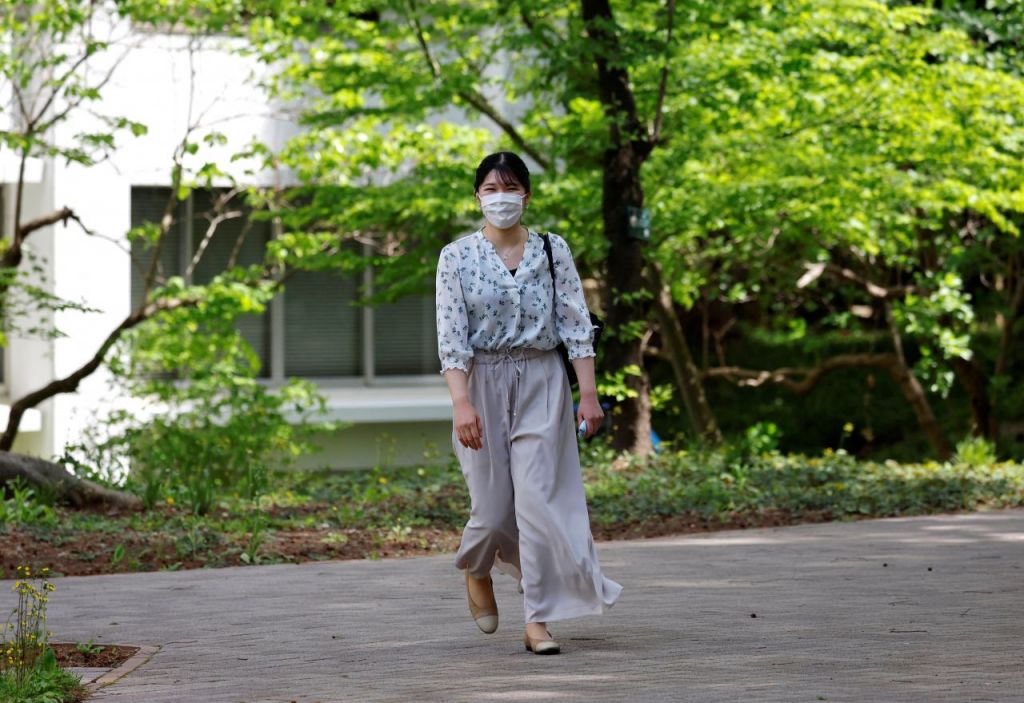 나루히토 일왕과 마사코 황후의 딸인 일본의 아이코 공주가 12일 일본 도쿄의 가쿠슈인 대학의 강좌에 참석하기 위해 걸어가고 있다. [이미지출처=로이터연합뉴스]