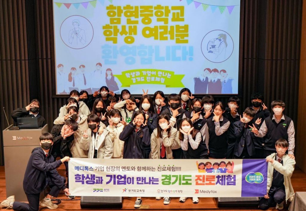 메디톡스는 12일 경기 수원시 광교 R&D센터에서 경기도, 경기도청소년수련원과 함께 ‘학생과 기업이 만나는 경기도 진로 체험’ 첫 행사를 열었다고 13일 밝혔다. 이번 행사에는 경기 시흥시 함현중 학생 30여명이 참여했다.