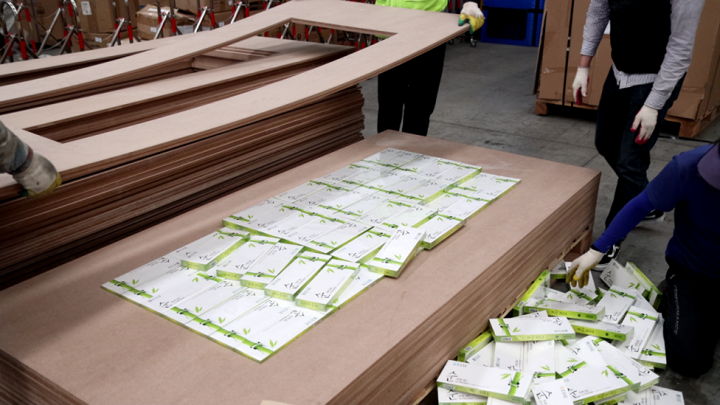 겹겹이 쌓인 합판 속에 대량의 담배가 은닉돼 있다. 관세청 제공