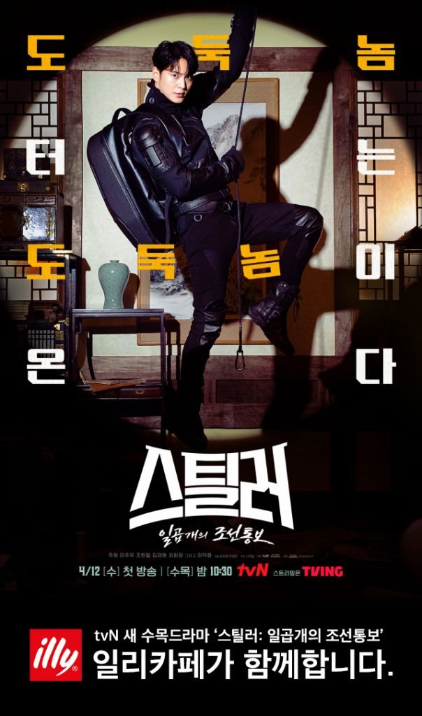 tvN 새 수목드라마 ‘스틸러: 일곱 개의 조선통보’는 베일에 싸인 문화재 도둑 스컹크와 비공식 문화재 환수팀 ‘카르마’가 뭉쳐 법이 심판하지 못하는 자들을 상대로 펼치는 케이퍼 코믹 액션 드라마다. 은닉된 문화재를 훔쳐 오는 비합법적 활동을 벌이고 있지만, 작전만큼은 전문적 스케일을 뽐내고 있는 다크히어로 스컹크로 분한 배우 주원이 또 어떠한 매력을 보여줄 지 기대되는 작품이다.