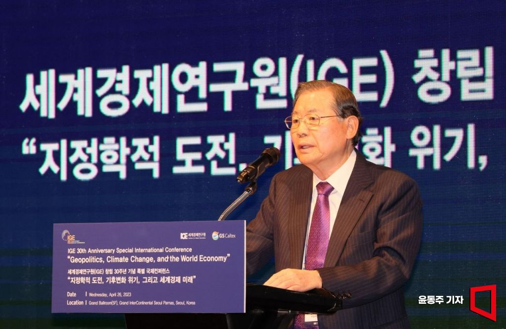 허동수 GS칼텍스 명예회장이 26일 서울 강남구 그랜드 인터컨티넨탈 서울 파르나스에서 열린 세계경제연구원 창립 30주년 국제컨퍼런스에 참석, 환영사를 하고 있다. 사진=윤동주 기자 doso7@
