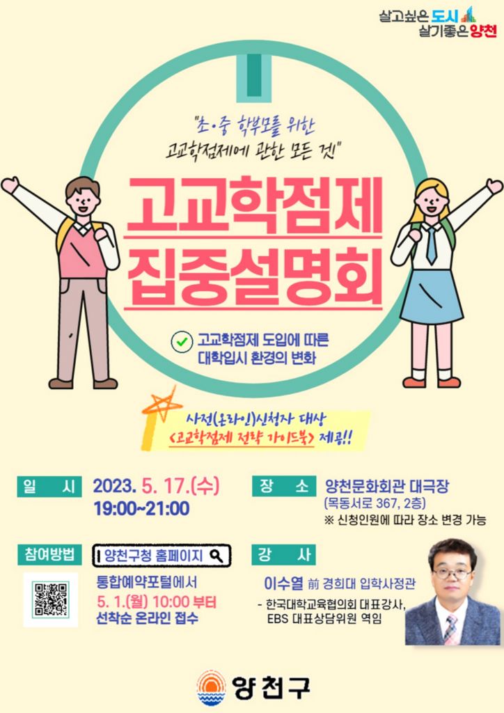 2025년 전면시행 앞둔 고교학점제 대비 특강, 5/17 양천문화회관 대극장 오후 7시 개최