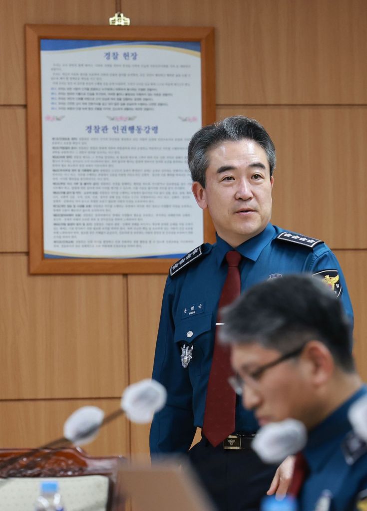 윤 청장은 이날 경찰 경호부대를 찾아 직원들을 격려하고 부대원들을 대상으로 특강을 진행했다. 윤 청장은 경호부대원들에게 "경호는 국가의 안위와 직결되는 활동"이라며 "스스로 각별한 자긍심을 바탕으로 국가 안보를 지킨다는 막중한 사명감을 갖길 바란다"고 말했다. 경찰 경호부대는 101경비단, 202경비단, 22경찰경호대로 이뤄졌다.