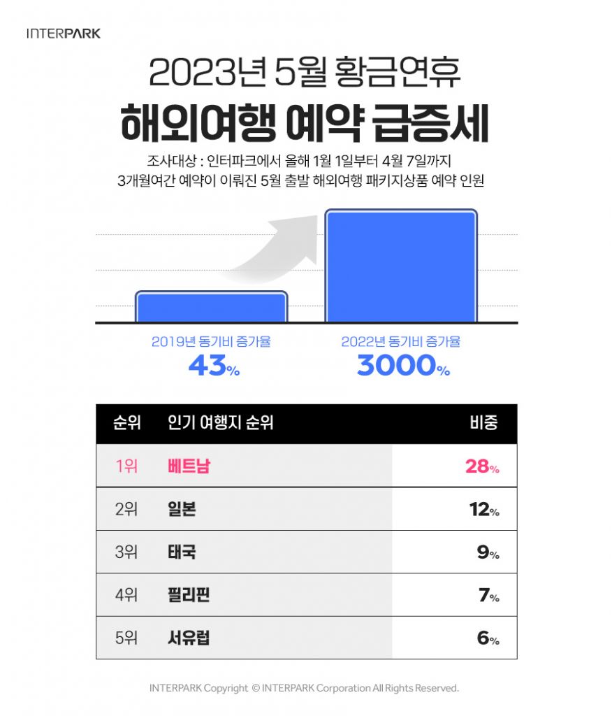 인터파크 5월 황금연휴 해외여행 예약 증가율[사진제공=인터파크]