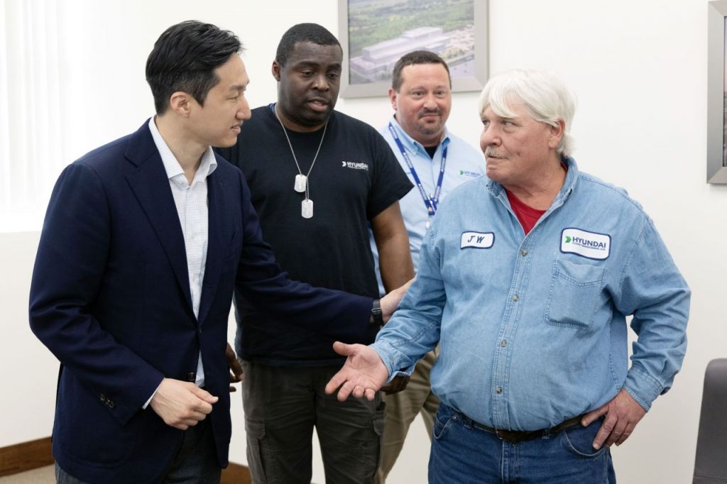 HD현대 정기선 사장이 최근 미국 앨라배마주 몽고메리시에 위치한 HD현대일렉트릭 변압기 공장에서 참전용사를 가족으로 둔 직원들을 만나 감사 인사를 전했다. [사진제공=HD현대]