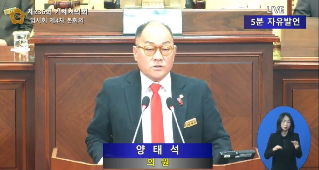양태석 거제시의원. [사진출처=거제시의회 5분자유발언 영상 캡쳐]