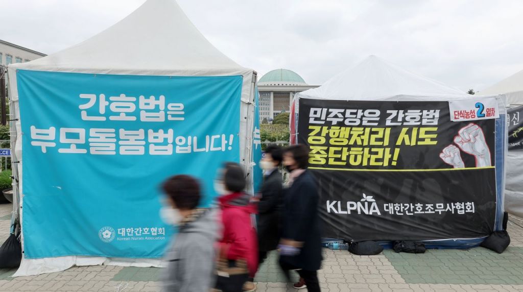 간호법 제정안이 국회 본회의를 통과하면서 의료계 내부 갈등이 극한으로 치닫고 있다. 당장 의사와 간호조무사 등이 3일부터 동시다발적인 ‘연가투쟁’ 등 부분 파업을 예고한 가운데 간호사를 제외한 사실상 모든 보건의료인 단체가 줄줄이 파업에 참여할 가능성이 높아 정부도 의료 현장의 혼란을 우려하는 모습이다. 반면 간호사단체 역시 대통령이 간호법 제정안에 거부권을 행사하면 강력히 대응하겠다며 날을 세우고 있다.