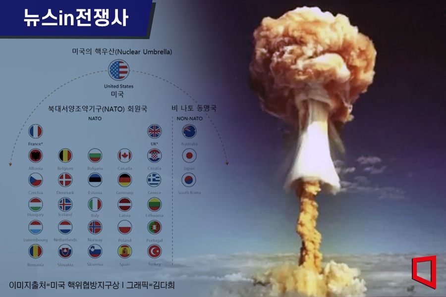 미국은 현재 유럽 내 나토 동맹국을 비롯해 한국과 일본, 호주 등 비 나토 동맹국에 핵우산을 제공하고 있다고 주장 중입니다. 핵우산 개념은 1960년대부터 등장한 개념으로 핵확산금지조약(NPT)에 가담해 자체 핵무장을 포기한 동맹국들의 안보 불안을 해소해주기 위해 미국이 동맹국들에게 외교적인 핵안보 제공 약속을 거듭 천명하면서 이어져왔는데요.