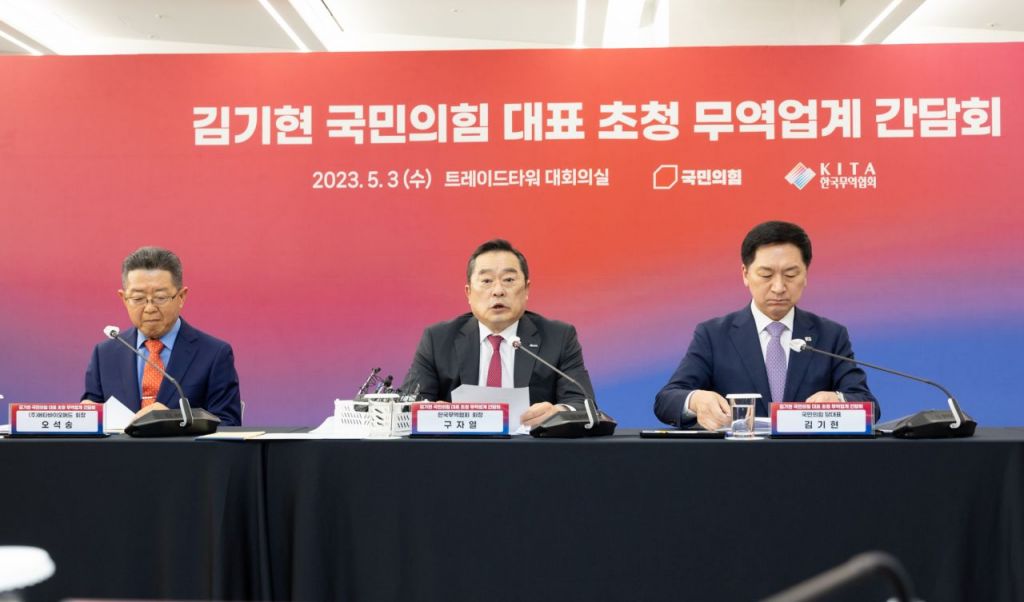 간담회엔 구자열 회장, 정만기 부회장을 비롯해 오석송 메타바이오메드 회장, 최명배 엑시콘 회장, 윤춘성 LX인터내셔널(옛 LG상사) 사장 등 무협 회장단과 회원사 대표 11명이 참석했다. 국민의힘에선 김기현 대표, 박대출 정책위의장, 한무경 산업통상자원중소벤처기업위원회 간사 등 8명이 참여했다.