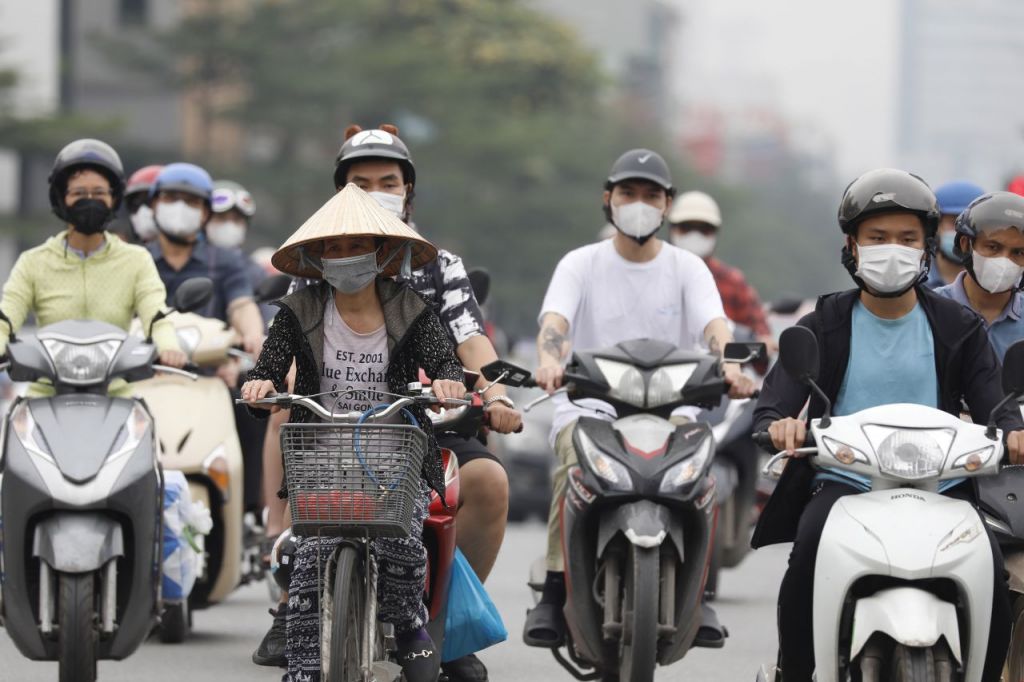 지난달 23일 베트남 수도 하노이에서 마스크를 쓴 사람들이 오토바이를 타고 있다. [이미지출처=연합뉴스]
