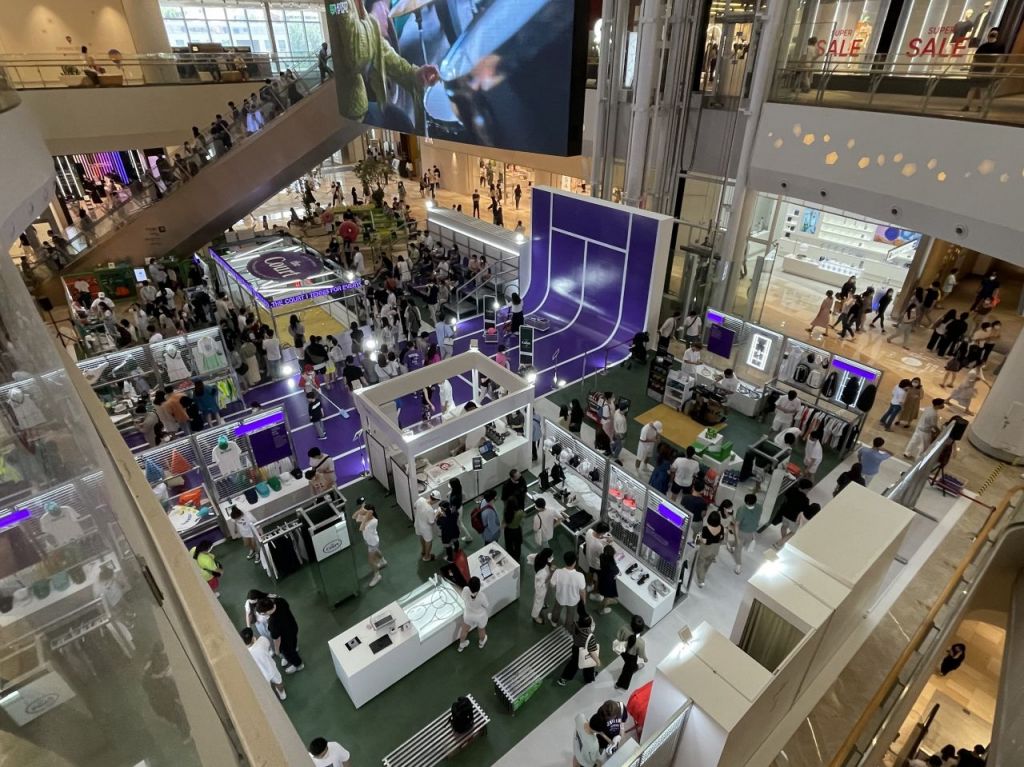 롯데백화점이 지난해 6월 잠실 롯데월드몰에서 선보인 대규모 테니스 팝업 '더 코트'에 방문객이 북적이고 있다[사진제공=롯데백화점].
