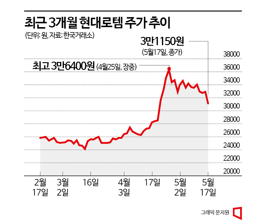 전동차를 포함한 레일솔루션 부문은 현대로템 연간 매출의 절반 이상을 차지하는 주력 사업이다. 지난해의 경우 연간 총매출(3조1630억원)의 약 56%에 해당하는 1조7790억원이 레일솔루션 부문에서 나왔다. 이번 튀르키예 전동차 사업 규모가 당초 계획보다 대폭 줄어들면서 일부 영향을 미칠 것으로 보인다. 이날 현대로템 주가는 전거래일 대비 5.45% 하락한 3만1150원에 거래를 마쳤다.